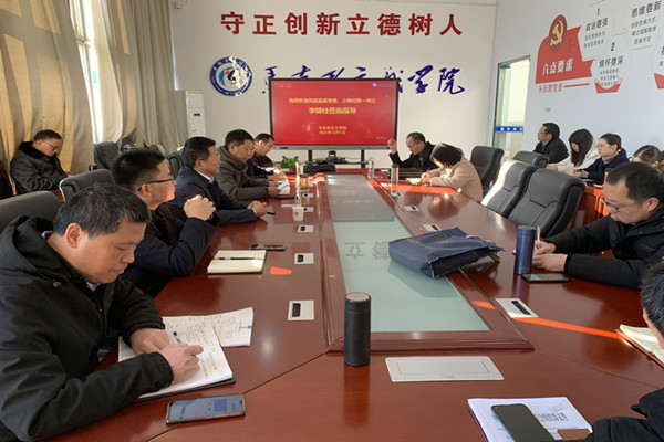12月1日下午,凤阳县委常委、小岗村第一书记李锦柱同志应邀在凤阳校区老图书馆二楼会议室作关于“弘扬小岗精神 推动乡村振兴”的专题报告。马克思主义学院院长张德化教授主持报告会并致欢迎词,马克思主义学院全体教师及部分人文学科教师共同参加了本场报告会。