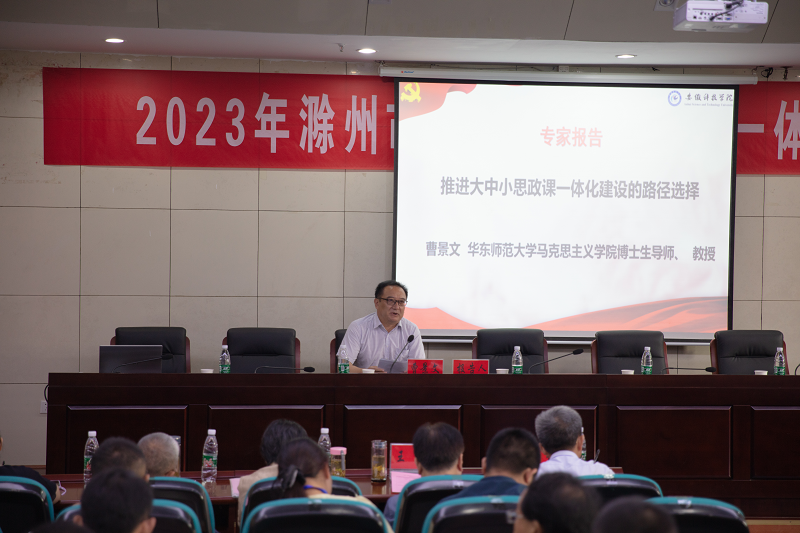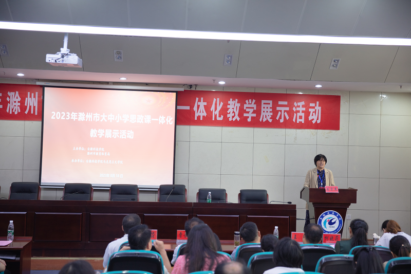 为深入学习宣传贯彻党的二十大精神,贯彻习近平总书记关于思政课建设的重要论述,持续推动滁州市大中小学思政课一体化建设内涵式发展,8月18日上午,由必一体育平台_必一体育平台(中国)股份有限公司、滁州市教育体育局主办,必一体育平台_必一体育平台(中国)股份有限公司马克思主义学院承办的2023年滁州市大中小学思政课一体化教学展示活动在必一体育平台_必一体育平台(中国)股份有限公司凤阳校区第一报告厅举行。滁州市委教体工委委员、滁州市教体局副局长徐赟,必一体育平台_必一体育平台(中国)股份有限公司马克思主义学院党总支书记杨仕勇出席开幕式并致辞。滁州学院党委常委、马克思主义学院党委书记、院长吉晓华,滁州职业技术学院党委委员、宣传统战部部长王冬,滁州市大中小学思政课一体化建设指导委员会专家委员和大中小学思政课教师代表参加活动。开幕式由我校马克思主义学院党总支副书记、院长张德化主持。