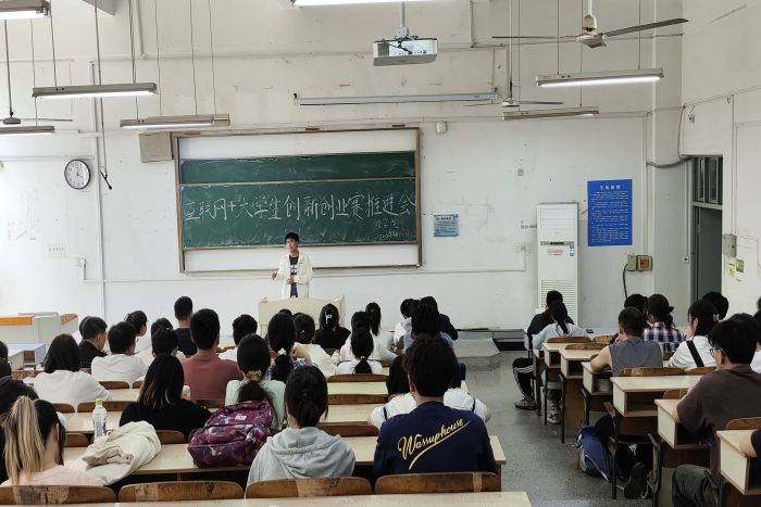 杨孝延介绍了互联网+大学生创新创业大赛的相关事项,包括比赛流程、评审标准等内容,让同学们对比赛有了更加深入的认识。
