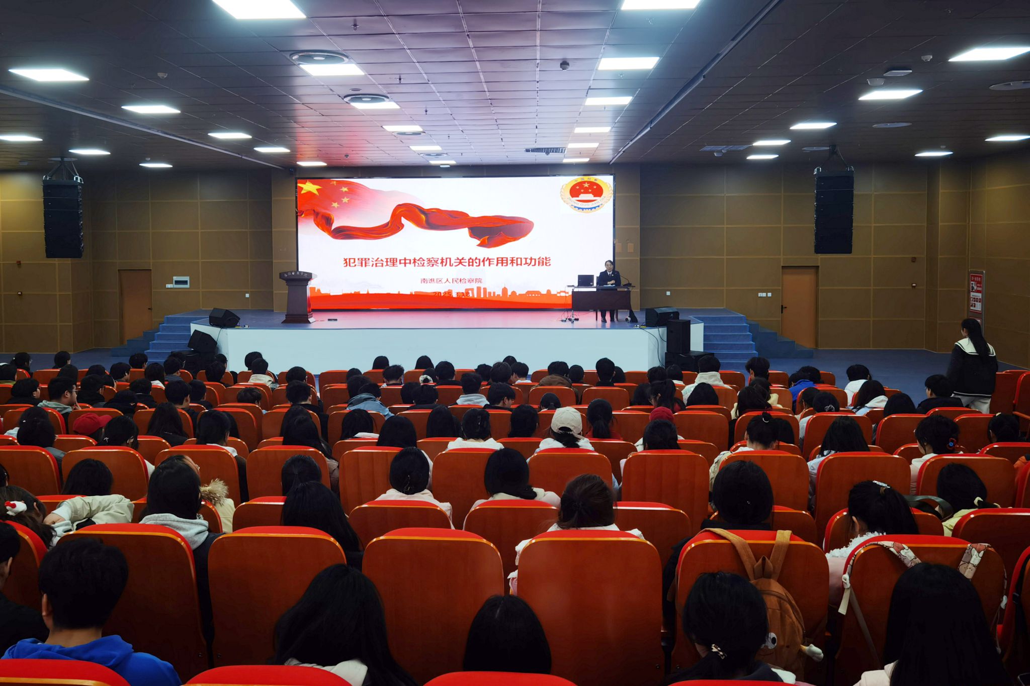 张婷婷围绕“犯罪治理中检察机关的作用和功能”主题,以时间为轴,深入浅出地讲解了自1931年中华苏维埃共和国临时中央政府成立以来检察机关的历史变革和职能演变。她指出,在新时代建设法治国家背景下,检察机关始终以法律监督为核心,通过履行刑事、民事、行政、公益诉讼四大检察职能及办理十大检察业务,全面履行侦查权、逮捕权、公诉权等六大检察权;并结合办案实例和网络热点,充分展现检察机关在维护国家统一、确保社会公平正义等方面所发挥的至关重要作用。