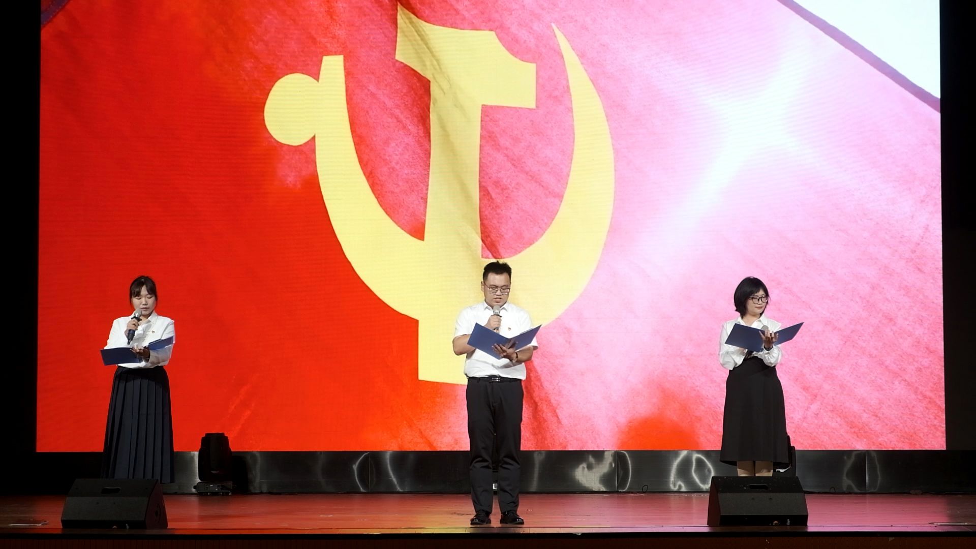 经各二级学院的选拔与推送,本次比赛共有十四组作品参赛。比赛现场,选手们以经典诗文作品进行朗诵再创作,通过刚劲有力的诵读、抑扬顿挫的声调、满怀激情的演绎,将字里行间的情感抒发得淋漓尽致,用声音传递中华文化的魅力,歌颂祖国的崭新篇章。