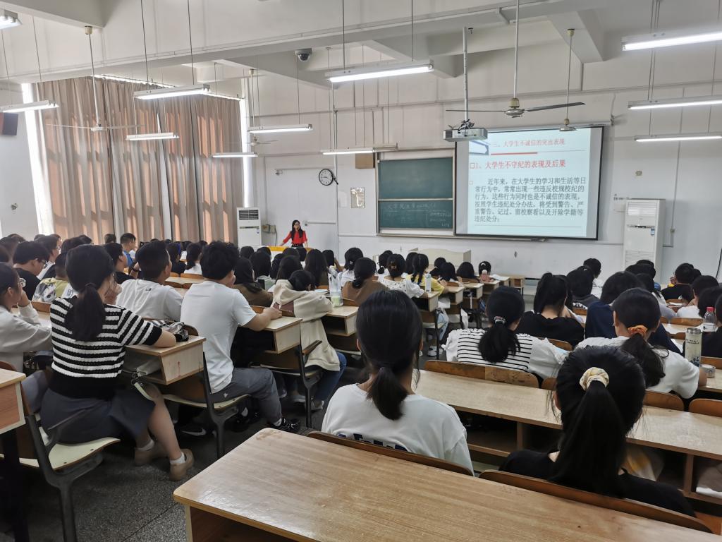 鲁冰冰讲述了诚信的含义与重要性,列举了少数大学生不守纪、不守法、不守信的突出表现及严重后果。她指出,大学生在生活方面应当遵规守纪、自尊自爱;在学习方面应当遵守课堂秩序,创建良好学风;在学术、资助、求职就业方面应该诚实守信。她带领全体新生学习了《必一体育平台_必一体育平台(中国)股份有限公司学生日常行为规范》,讲述了大学生校园礼仪的重要性,在宿舍群体生活礼仪、校园课堂礼仪、师生交往礼仪、参加校园集体活动礼仪等方面提出了具体要求,认真回答了同学们就学习生活方面提出的具体问题,帮助新生更好的完成“大学生”身份的转变。