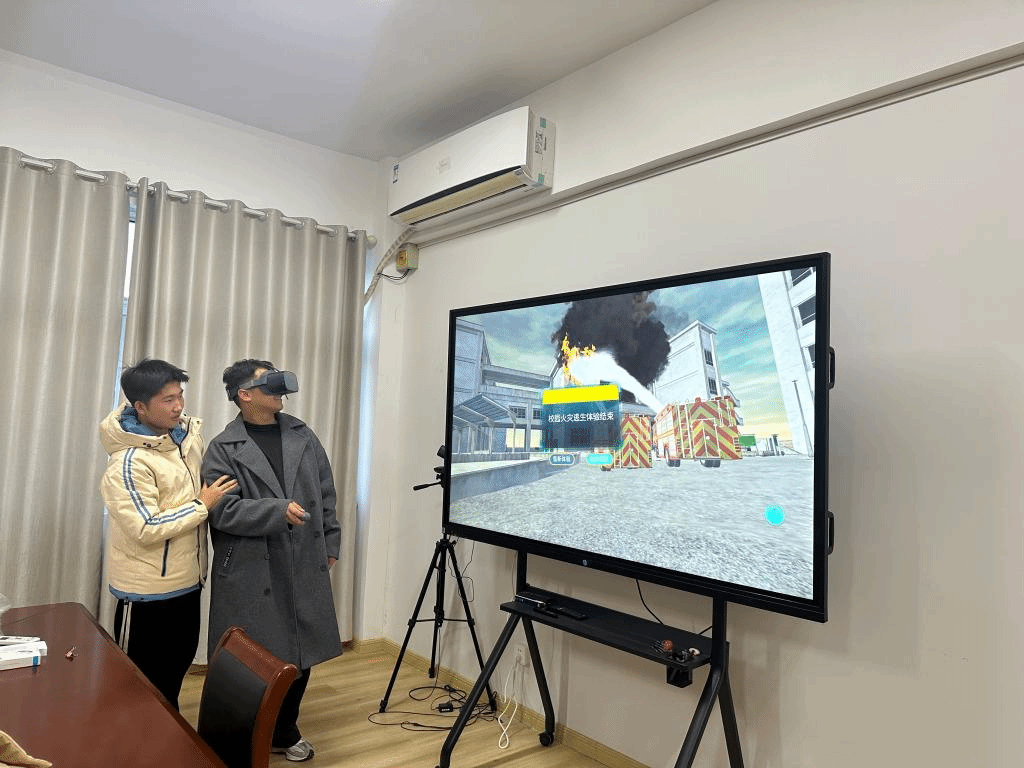 活动现场,同学们佩戴VR设备,通过视觉、听觉等多重感官刺激,真实还原火灾场景,模拟灭火器的使用、逃生通道的选择等真实场景,学习消防安全知识和应对技能,提高应对火灾等突发事件的逃生能力,增强自身安全防范意识。身临其境的体验方式,不仅带领同学们深入了解消防安全知识,也促使同学们更加深刻理解消防安全的重大意义,进而让消防安全教育深入人心,提高了消防安全教育质量。