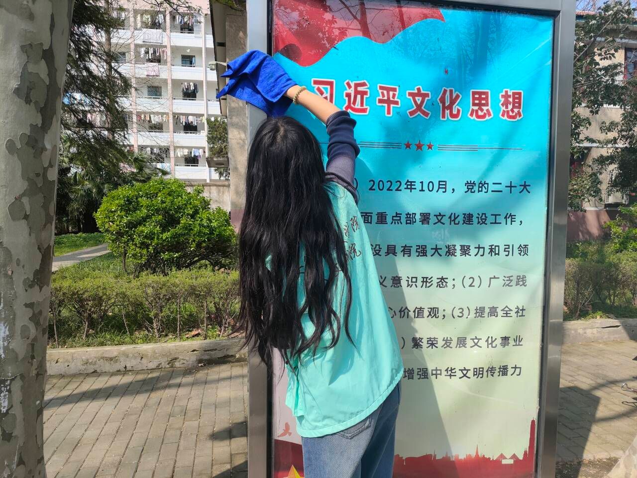 春风拂大地,万物萌生机。为共同打造美丽校园,提高校园环境美观程度,增强同学们对校园环境的关注度和保护意识,人文学院学生会于3月31日至4月1日在必一体育平台_必一体育平台(中国)股份有限公司东区学知楼、求知楼和南门主干道开展宣传栏清洁校园志愿服务活动,众多同学积极参与。
