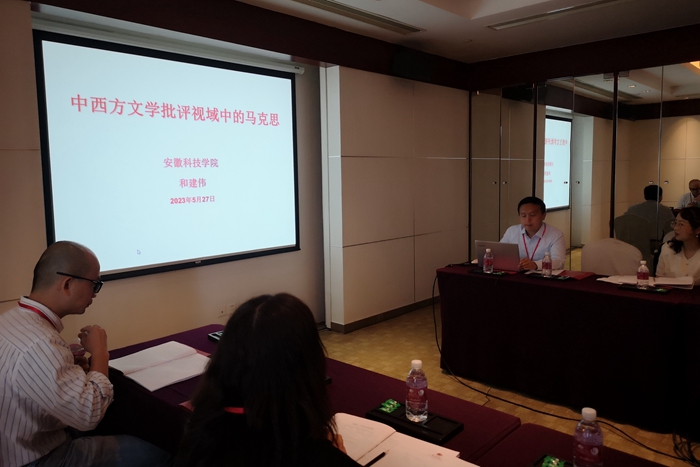 在之后举行的“百年来中外文论的对话与互构”学术研讨会上,各位学者对中外文论比较研究、现代中外文论话语阐释、世界文学图景下的文学理论建构、中国文论的本土化建构、文学理论研究的异域审视、文学理论的作品主题阐释、文学理论的译介与影响研究等议题进行了研讨交流。和建伟老师在“中外文论比较研究”分会场宣读论文《中西方文学批评视域中的马克思》,受到点评专家的肯定。