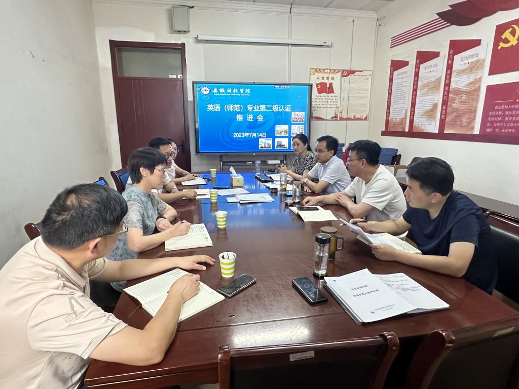 为深入推进师范类专业认证工作,7月14日上午,教务处在处会议室召开英语专业认证自评报告工作推进会。教务处领导班子成员、外国语学院党政领导及相关人员参加会议。会议由教务处处长赵伟峰主持。