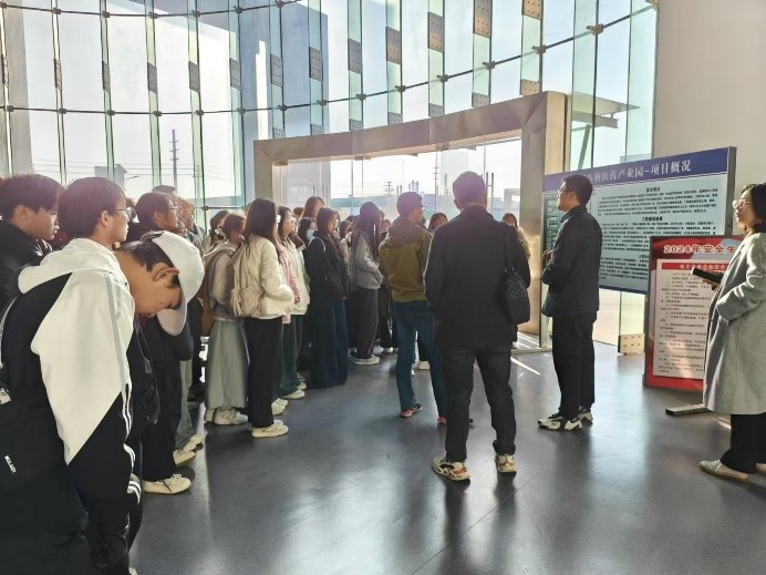 当天上午八点,学生们在教师们的引领下,首先抵达安徽百川生物医药产业园。园区负责人对师生们的到来表示了热烈的欢迎,并简要介绍了园区的发展历程、入驻企业和主要产品。学生们有机会实地参观了原料药及中间体研发、中试放大、项目孵化等相关区域,对生物医药产业有了更直观的认识。