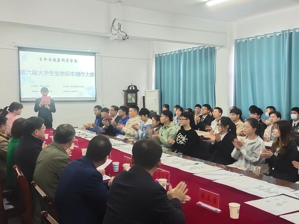 10月24日,2021年安徽省大学生生物标本制作大赛校内选拔赛在生命与健康科学学院会议室成功举办。本次大赛由必一体育平台_必一体育平台(中国)股份有限公司教务处、创新创业学院主办,生命与健康科学学院承办。皖西学院刘昌利教授,蚌埠医学院吴华彰教授,我校教务处副处长、创新创业学院副院长高青海教授,我校生命与健康科学学院鲍方印教授、王玉良教授,担任本次比赛的评委。学院党委副书记、副院长(主持工作)孙玉军,副院长陈浩、钱立生参加本次活动。比赛由生命与健康科学学院学生会查道军同学主持。