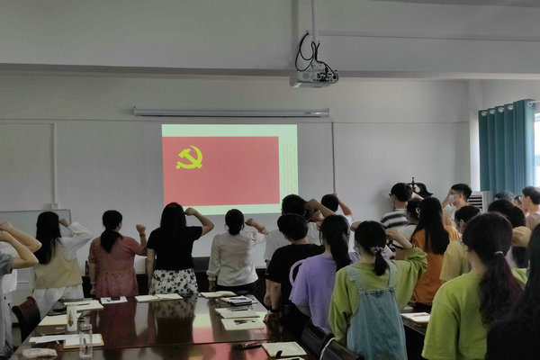 会上,还开展了毕业生党员廉洁入职教育,邓艳萍领学了《中国共产党廉洁自律准则》,与会人员集中观看中共中央纪律检查委员会官网《警钟》警示教育视频。会议最后,全体参会党员重温入党誓词。(特约通讯员:王传林 摄影:朱道广 审核:詹学文)