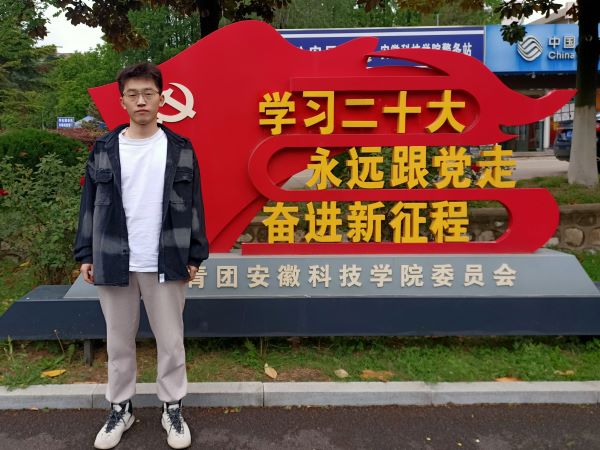 人物简介:刘亦剑,男,汉族,1999年12月出生,安徽安庆人,曾就读于安徽职业技术学院化工生物技术专业,后于2021年安徽专升本考试中被我校生物科学专业录取,今年以优异的成绩考取合肥工业大学食品科学与工程专业硕士研究生。