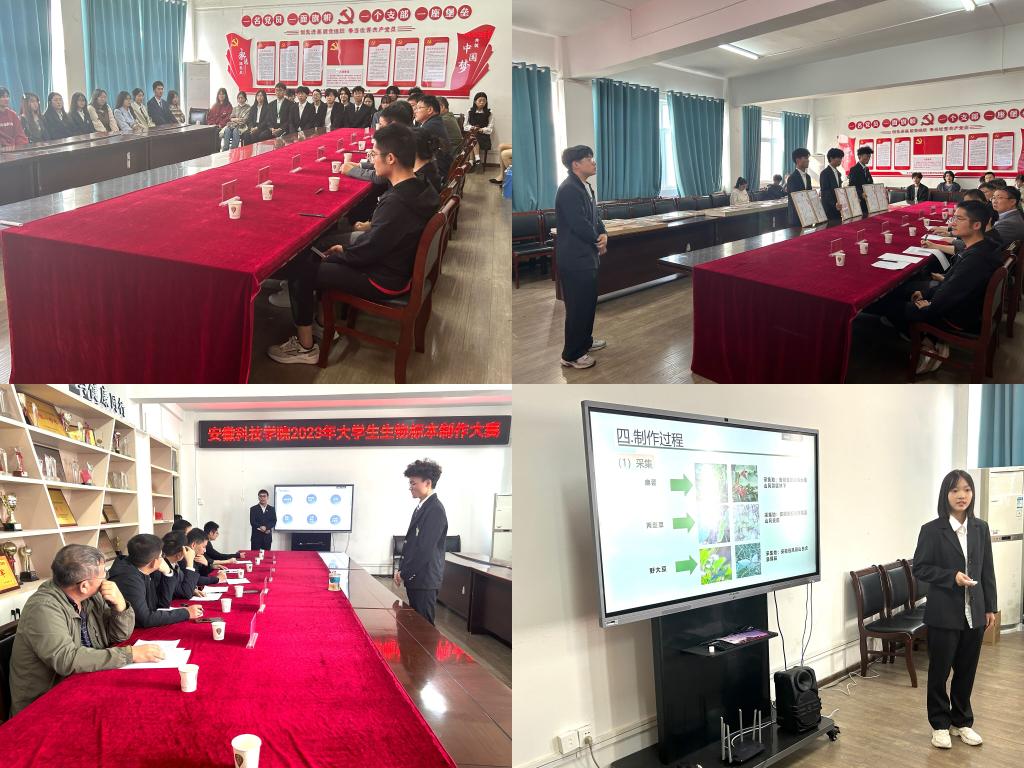10月14-15日,2023年安徽省大学生生物标本制作大赛必一体育平台_必一体育平台(中国)股份有限公司选拔赛在生命与健康科学学院学知楼417会议室成功举办。阜阳师范大学生物与食品工程学院副院长唐俊教授,蚌埠医学院生命科学学院吴华彰教授,学校教务处副处长、创新创业教育学院副院长高青海教授,建筑学院赵蕊副教授,农学院王小华博士,动物科学学院闫康博士,生命与健康科学学院王玉良教授应邀担任比赛评委。生命与健康科学学院副院长(主持工作)孙玉军教授莅临比赛现场指导。