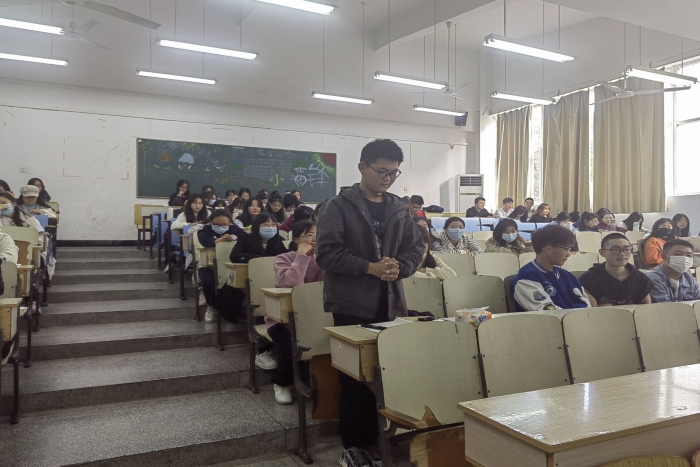 为帮助新生快速适应大学生活,充分发挥优秀学生朋辈指导作用,11月2日下午,外国语学院在求知楼A104、A106教室分专业开展新老生经验交流会。2022级新生辅导员宋兵兵、张薇薇以及全体新生参加交流会,8名优秀学生分享经验。