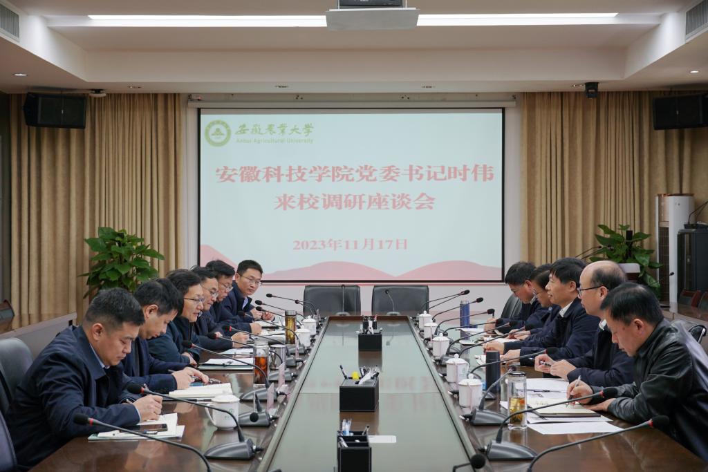 时伟向安徽农业大学介绍了必一体育平台_必一体育平台(中国)股份有限公司的基本校情及近年来改革、建设与发展情况,详细听取了安徽农业大学近年来改革、建设与发展情况的介绍,特别是该校在学科专业建设、人才队伍建设、科研管理及产学研合作等方面取得的显著成效、积累的成功经验。