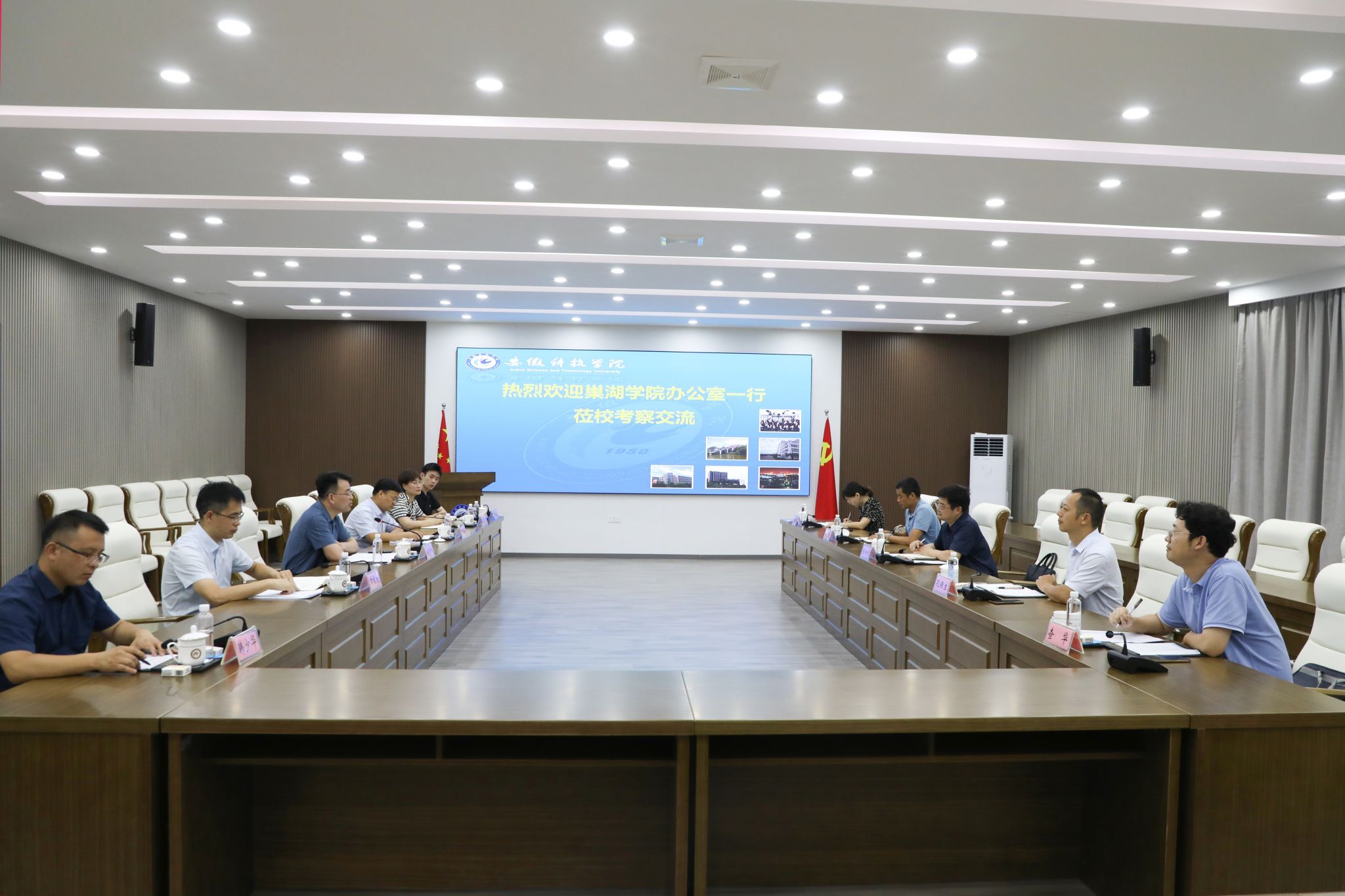 赵伟峰对巢湖学院办公室一行来校交流工作表示热烈欢迎,并介绍了学校办学历史和近年来事业发展成就,以及我校在目标管理考核、“一案三历”机制、“民声呼应”平台建设、依法治校、督查督办等方面的做法。他希望两校进一步加强联系,特别是在办公室工作等方面密切交流,相互学习借鉴,不断提升行政管理工作的规范化、制度化与科学化水平。