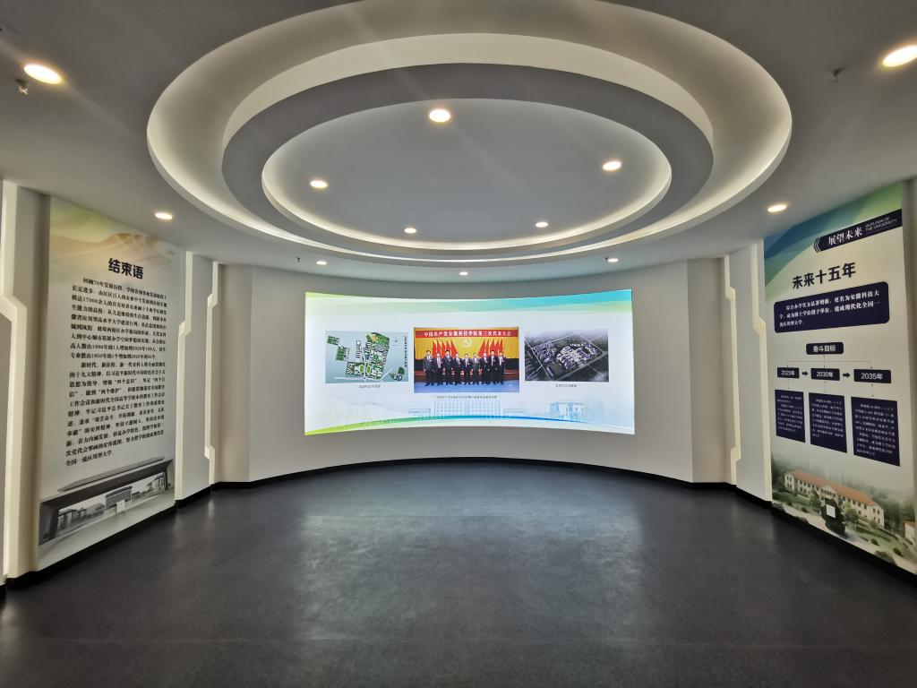 校史馆内还汇聚了大量的历史实物。这其中各个历史时期学校的办学史稿、有国家科技进步一等奖获得者黄世尧老校友的先进事迹报道原件,也有学校及广大教师、青年大学生荣获各级表彰奖励的证书、奖牌、奖章、奖杯,还有不同历史时期学校的老物件、图书馆馆藏图书以及科技创新成果实物展示等。校史馆还专题展示了学校第三次党代会描绘的“三步走”战略宏伟蓝图。这些对于师生们了解过去、把握现在、创造未来具有十分重要的意义。
