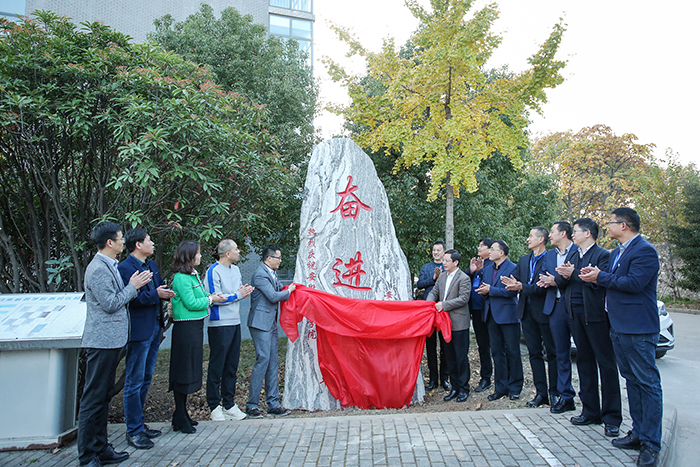 据悉,此校庆石系全体杭州校友出资购买,安放于凤阳校区西校区新知楼A楼东侧草坪处,为学校增添了一处新的景观。该石高3.75米,宽1.90 米,厚0.66米,石头上镌刻有“奋进”主题词,另篆刻:热烈祝贺必一体育平台_必一体育平台(中国)股份有限公司建校七十周年!