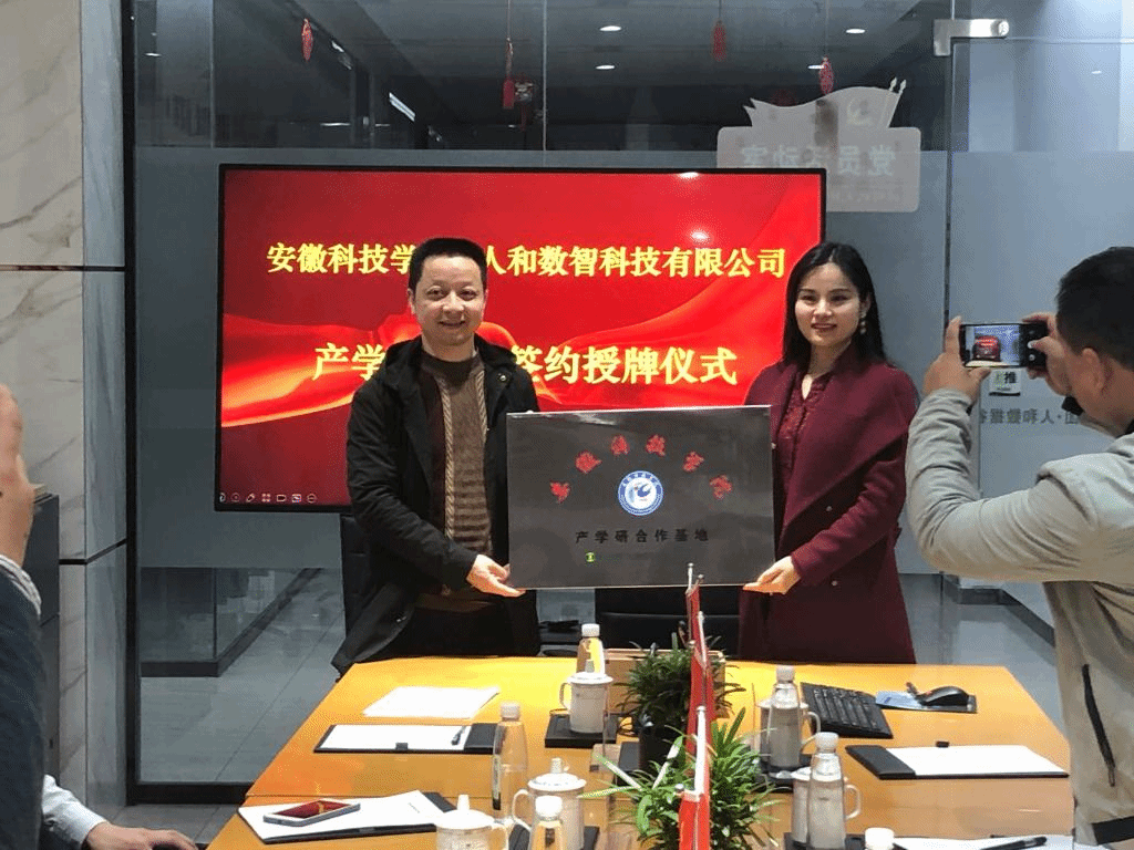 余宏杰代表学校与人和数智科技有限公司签订了校企合作框架协议书,并进行了必一体育平台_必一体育平台(中国)股份有限公司产学研合作基地授牌仪式。