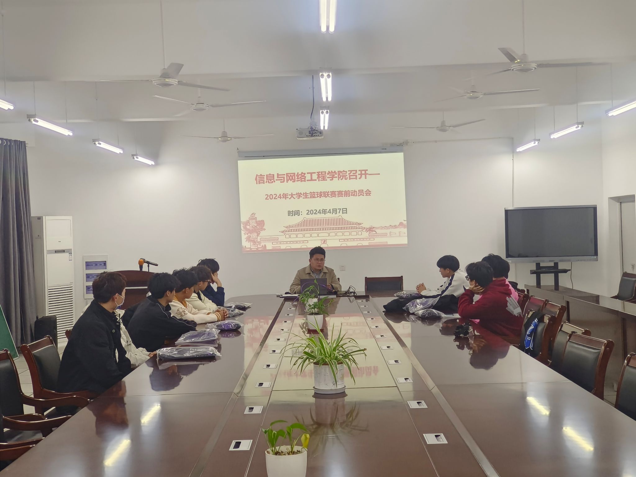 为做好大学生篮球联赛参赛准备工作,激发参赛运动员备战热情。4月8日,信息与网络工程学院在尚行楼B418召开2024年大学生篮球联赛赛前动员会,专职辅导员崔北坤以及学院篮球队成员参加本次会议,会议由崔北坤主持。