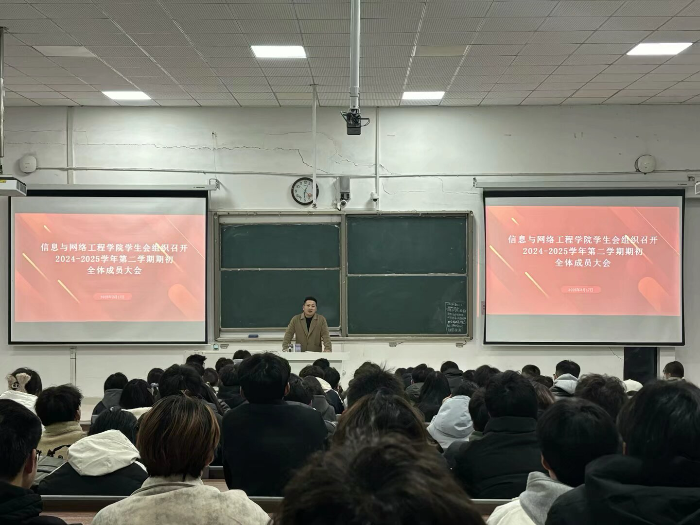 为明确新学期学生会工作重点,加强学生干部队伍建设。2月17日,信息与网络工程学院学生会在致知楼C111组织召开2024-2025学年第二学期期初全体成员大会。学生会指导老师崔北坤及全体学生会成员参加本次会议,会议由崔北坤主持。