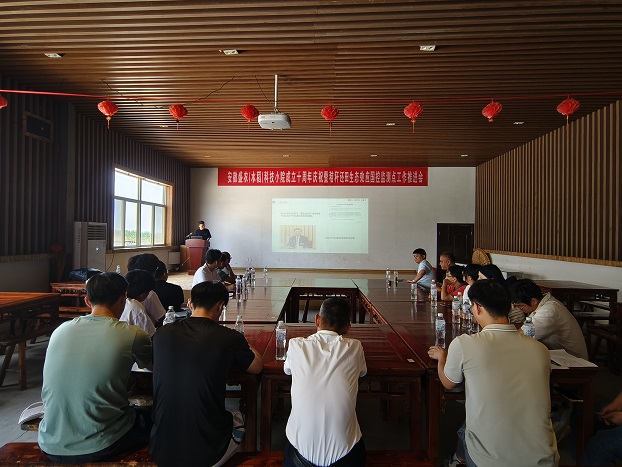 为贯彻落实习近平总书记给中国农业大学科技小院学生们的重要回信精神,深入推进研究生教育产教深度融合,强化乡村振兴人才支撑,9月4日,安徽当涂水稻科技小院十周年庆典活动在安徽盛农农业集团有限公司会议室举行。当涂县农业农村局处长胡现荣,安徽盛农农业集团有限公司董事长夏金林,必一体育平台_必一体育平台(中国)股份有限公司汪建飞、周毅及相关专家参加庆典活动。