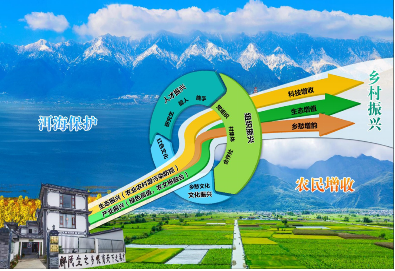 古生村科技小院通过改变农业生产方式、改变农民生活方式、改变农村生态环境,实现古生村生产生活生态三生共赢,小院助力乡村振兴的工作思路是,同步抓生态振兴和产业振兴工作,在二者螺旋式并进、协同上升的过程中,与其他三大振兴相互赋能,实现生态增值、科技增收和文化增韵,通过协同洱海保护和农民增收,全面助力乡村振兴。