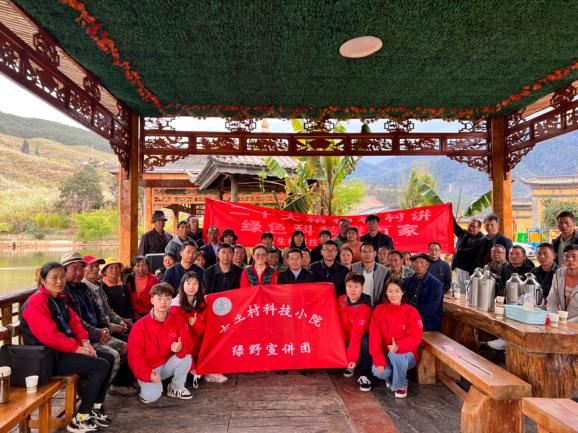 古生村科技小院以协同实现洱海保护与农民增收为目标,推动流域农业高质量发展,助力乡村振兴。科技小院长期驻扎农村生产一线,秉承四零服务宗旨(零距离、零时差、零门槛、零费用)服务农民,坚持解民生、治学问,组建志愿服务队,引领广大群众涵养家国情怀、提高文明素养。当前,洱海流域仍面临困境,志愿队发挥“从实践中来到实践中去”的原则,围绕在实践中所发现生产、生活、生态文明待提高,留守儿童缺乏陪伴等问题,首先利用科技赋能,将知识转化为行动;其次,开展针对性的系列科普教育志愿服务活动,与村民的实际生产生活问题相结合,提高居民生态文明素养、绿色环保理念和生活幸福指数,践行习近平生态文明思想,推动使其深入人心。