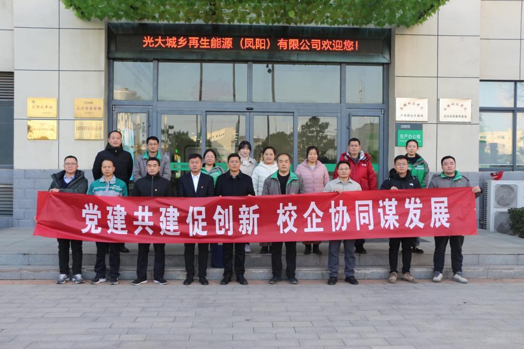 光大城乡再生能源(凤阳)有限公司总经理助理、党支部副书记宫坤对沈树周一行表示热烈的欢迎并介绍了公司的发展历程、生产和党建等基本情况,从党建引领企业发展方面交流了经验。沈树周介绍了学院和专业的发展历程、党建特色、教学科研和人才培养等方面的情况,对公司长期以来关心和支持学院人才培养工作表示诚挚的感谢,希望双方能够以党建为统领,优势互补,良性互动,高质量实现党建促发展。校企双方支部党员在党建共建、人才培养、课题研究和资源共享等方面开展了深入的交流,拟在企业生产末端固废处置和烟气治理等方面开展深度合作,力求使党建促发展取得实效。随后,双方共同签署了党建共建协议书,确定了党建共建工作具体内容和联动机制。