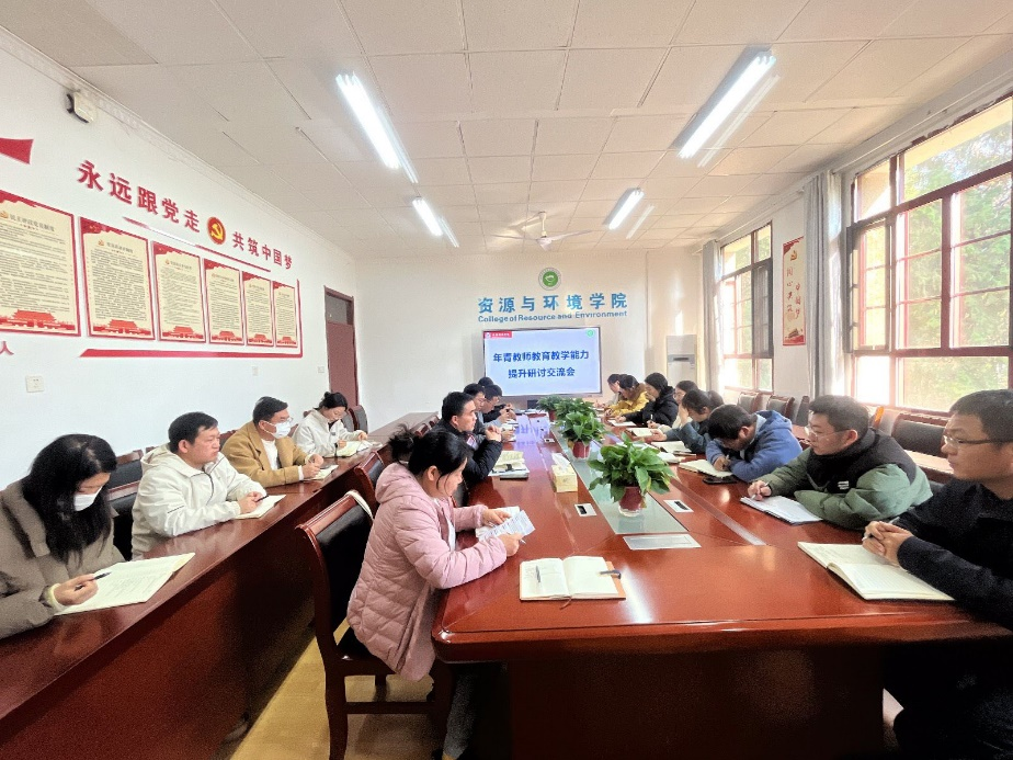 3月19日下午,资源与环境学院在东办公楼207室召开了年青教师教育教学能力提升研讨交流会,学习领会学校本科课堂教学管理办法、校院两级教育教学督导联动、分类教学评价体系等文件精神,旨在进一步提升年青教师教育教学能力和水平。会议由副院长邹海明主持。