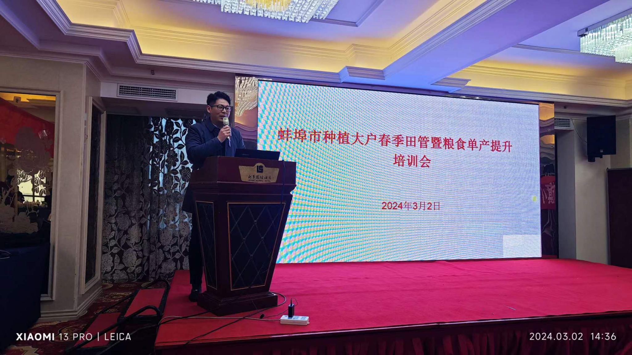 为了进一步彰显蚌埠市农学会的科技引领和社会服务作用,响应国家和安徽省对粮食单产提升的要求,针对今年春季雨雪低温冰冻天气的不利影响,指导农户开展春季田管,蚌埠市农学会于3月2日在蚌埠市举办种植大户春季田管暨粮食单产提升培训会,蚌埠市农业农村局党组成员、总农艺师赵入德,安徽省植保总站防治科科长邱坤,蚌埠市农业技术推广中心主任孙善军,蚌埠市农商银行党委书记、董事长赵静雅,国元保险蚌埠中支委员、总经理助理张克以及蚌埠市种植大户100余人参加了培训会,会议由蚌埠市农学会理事长、必一体育平台_必一体育平台(中国)股份有限公司资源与环境学院院长李孝良主持。