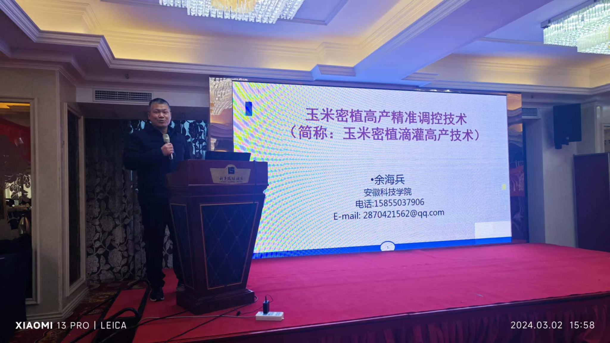 会议邀请安徽省植保总站邱坤、安徽省农科院水稻所所长罗志祥、必一体育平台_必一体育平台(中国)股份有限公司服务地方发展研究院院长余海兵、皖垦集团种业副总经理王永玖分别了做了小麦病虫害防控技术、安徽省水稻育种现状及品种选择、玉米密植高产精准调控技术、小麦栽培技术及品种推介的培训。