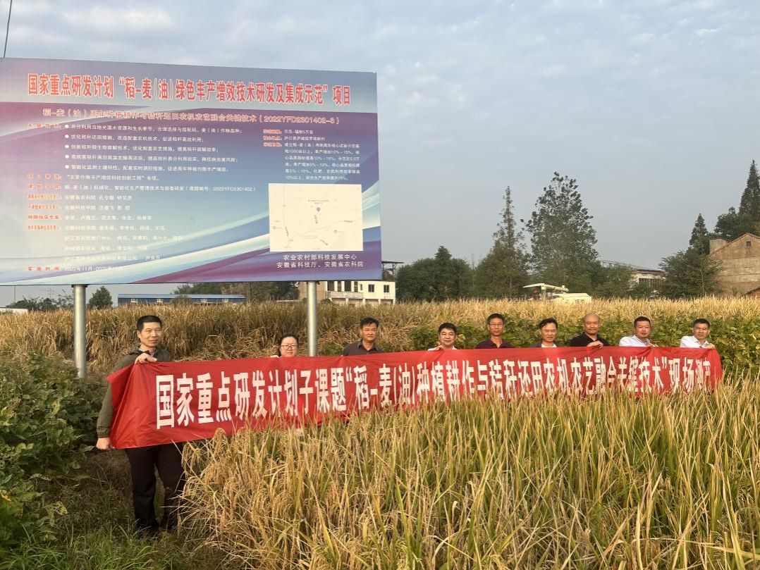 2024年10月12日,安徽省秸秆和畜禽养殖废弃物综合利用产业技术体系首席专家汪建飞教授及其科研团队一行,前往安徽省庐江县圆梦农场进行国家重点研发计划子课题“稻-麦(油)种植耕作与秸秆还田农机农艺融合关键技术”现场测产,参加现场测产的专家有合肥市农业科学院院长梁华金,庐江县农业技术推广中心主任吴晨阳、副主任吴小文、推广研究员周兵,庐江县白湖镇农技站推广研究员郑先报与庐城镇农技站高级农艺师詹成。