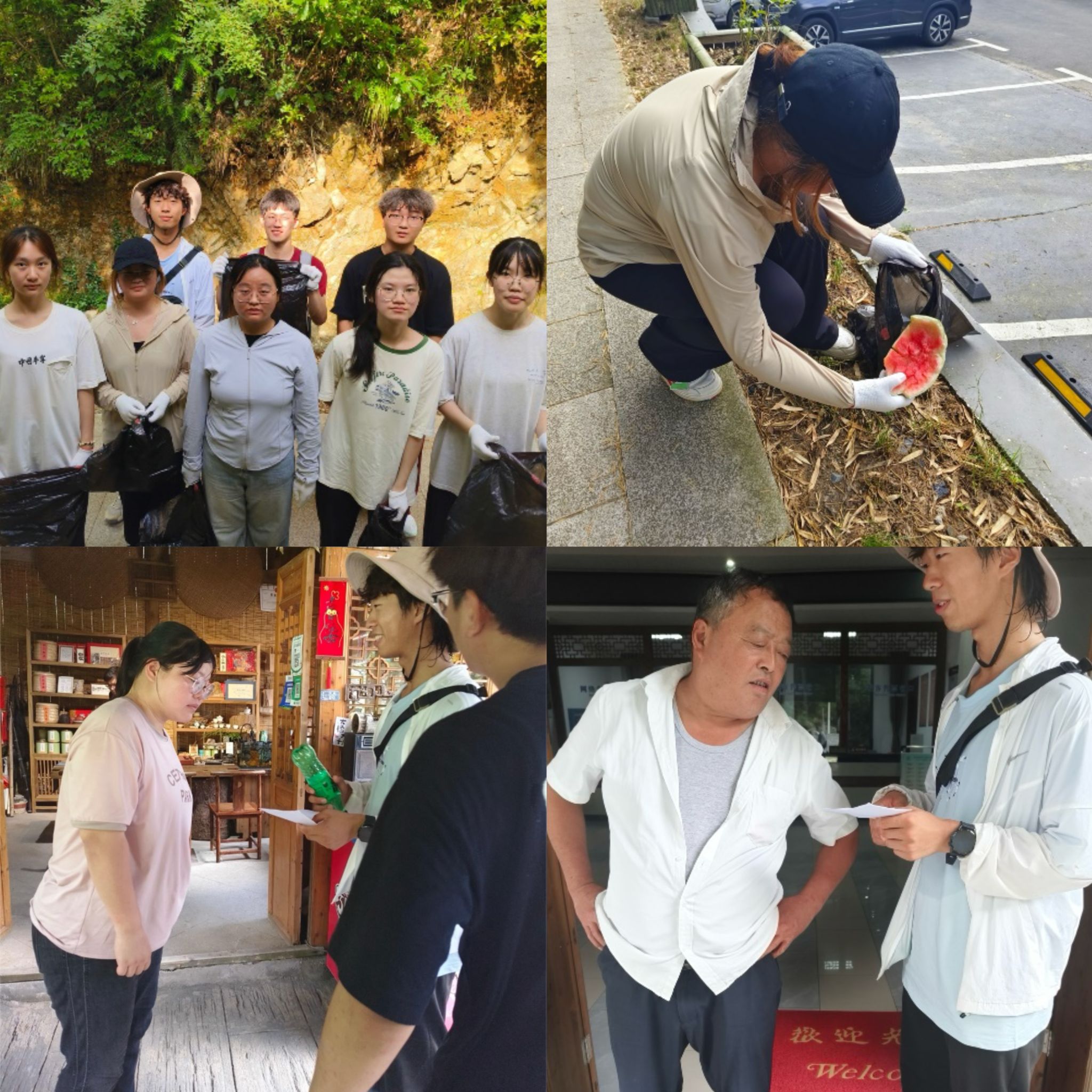 7月7日,活动迎来了高潮——志愿拾荒行动。在景区及周边区域,学生们手持垃圾袋,化身环保小卫士,用实际行动践行生态文明理念。他们不畏酷暑,细心捡拾道路两旁、景区角落的废弃物,用汗水换来了环境的整洁与美丽。此次活动不仅增强了学生们的环保意识和社会责任感,也向当地居民和游客传递了爱护环境、共建美好家园的正能量。
