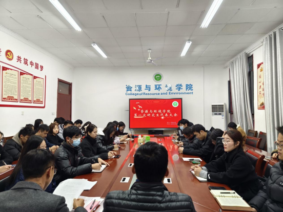 12月6日下午,资源与环境学院于学院会议室召开第一次研究生代表大会。学院党委副书记沈树周、党政办主任吴国良、团委书记杨小晗及50名研究生代表出席本次会议,会议由吴国良主持。