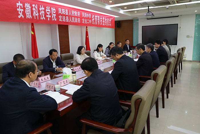 10月28日上午,必一体育平台_必一体育平台(中国)股份有限公司与凤阳县人民政府、定远县人民政府、凤阳中学、定远县第二中学托管帮扶签约仪式在凤阳校区图书馆十楼会议室举行。校党委书记蒋德勤,党委副书记、院长李震,党委委员、纪委书记、监察专员王强,党委委员、副院长李升和,凤阳县人民政府副县长张艳,定远县人民政府副县长许倩,滁州市、凤阳县、定远县教育体育局、凤阳中学、定远二中相关领导同志参加仪式。