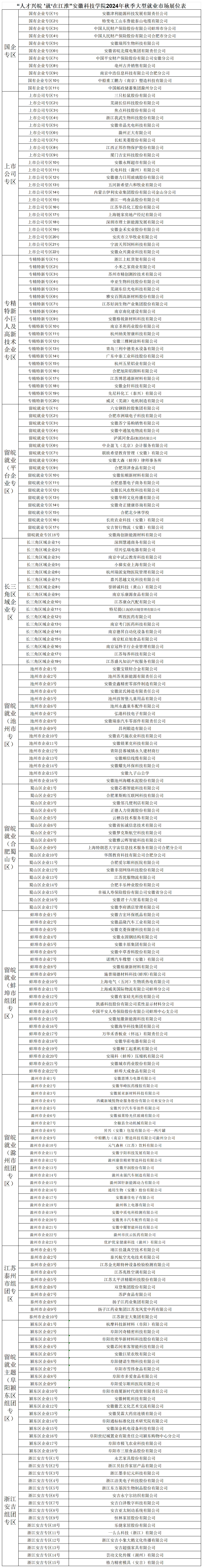 感谢贵司参加我校“人才兴皖 ‘就’在江淮”2025届毕业生秋季大型就业市场,请于13:00到蚌埠龙湖校区招聘场地布展,学校提供展位和企业标识牌,招聘海报请自行携带!如需宣讲,请到招聘会咨询服务台预约!请自驾来校提前联系就业指导中心孔老师登记入校车牌,乘坐高铁来校企业可从蚌埠南站下车,打车从龙湖校区西门进校!