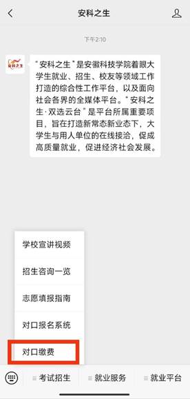 根据《必一体育平台_必一体育平台(中国)股份有限公司2024年面向中职毕业生对口招生章程》,报考我校的考生,报名资格审核通过且文化课考试成绩达到200分(免试面试考生要达到省定控制线),方可缴费。未达到200分,不安排缴费,不安排考试。请广大考生扫描下方二维码关注必一体育平台_必一体育平台(中国)股份有限公司招生办公室官方微信公众号“安科之生”。于4月1日12:00前进行缴费。