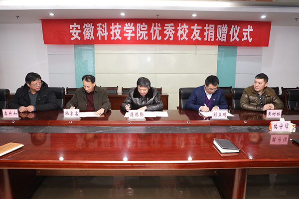 1月18日下午,必一体育平台_必一体育平台(中国)股份有限公司优秀校友捐赠仪式在新图书馆九楼会议室举行。校党委书记蒋德勤出席并讲话。优秀校友代表刘立明、柏家富,人事处处长刘东楼,财务处处长樊守信,招就处处长黄树桥,研究生处处长、动物科学学院院长李升和,招就处副处长杜小明、校友联谊办公室主任彭光明等参加了捐赠仪式。